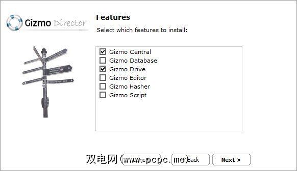 下载并开始下载后,安装Gizmo Director,系统将询问您要安装哪些功能。您必须安装Gizmo Central,因为它是程序的核心,而今天仅安装Gizmo Drive –如果其他选项对您没有任何意义,请取消选中其他选项。