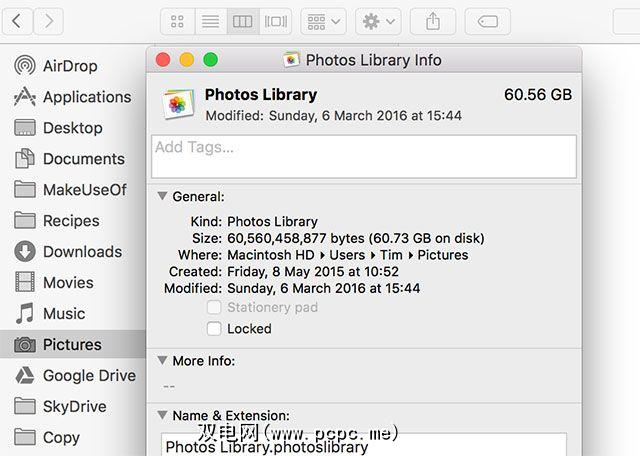 您可以选择50GB,200GB或整个1TB的存储空间空间,每月分别为0.99美元,2.99美元和9.99美元。如果您要存储多个设备的备份并且有很多照片和视频,则可能需要使用200GB的选项。要了解照片库的大小,请打开“查找器"窗口,然后转到“图片"文件夹(通常可通过左侧的侧边栏菜单访问)。右键单击您的照片库,然后单击获取信息(也可以突出显示它,然后使用 command + i )—大小将显示在