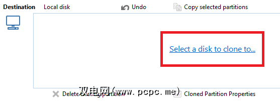 在以下屏幕上,您需要选择目标磁盘。您可以将克隆发送到外部或内部驱动器,但要记住该驱动器的所有内容都将被删除。