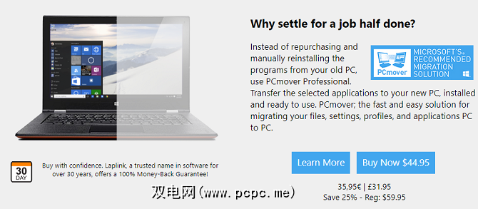 由于Microsoft在Windows 10中取消了Windows Easy Transfer,因此您需要使用第三方工具。微软认可的选项是Laplink的 PCmover Express –但要花29.95美元。考虑到Windows Easy Transfer是免费的,这似乎过多。 Express版本仅移动文件,设置和用户配置文件。如果您还想移动应用,则需要为专业版支付$ 44.95。