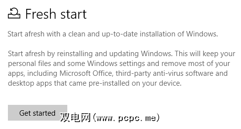 如果克隆失败,但您的计算机仍能启动,则可以使用新的Windows 10 新启动工具来安装操作系统的新副本。转到设置>更新和安全>恢复>入门。您的计算机将询问您要保留哪些文件,然后安装Windows的新副本。