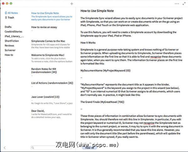 尽管我们使用MarsEdit编写文章并将其发送到WordPress,但是使用Scrivener进行较长的编写项目,但我还是将Simplenote添加到了Mac的扩展坞中。 Simplenote将用于撰写较短的文章和笔记页面,与启动Evernote相比,我发现它们更易于使用。顺便说一下,Scrivener文档可以与Simplenote同步,但是它确实需要一些设置。请参阅此Scrivener页面上的视频教程。