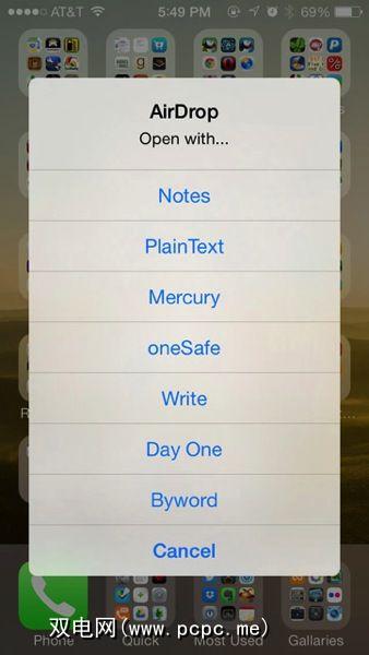 iOS设备上的文档也可以与其他AirDrop用户共享,他们甚至可以在另一个iOS文本编辑器(如Apple的iOS)中打开Simplenote文档。 Notes,第一天。