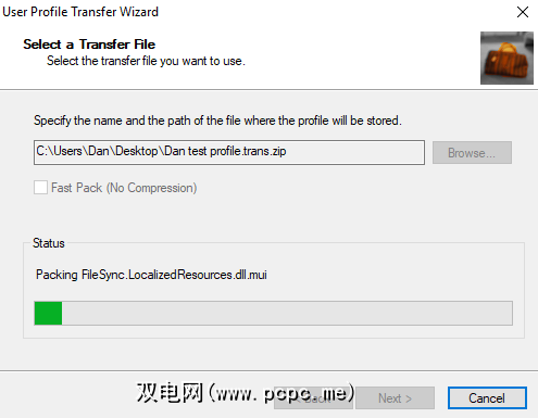 该应用程序会将您的个人资料转换为ZIP文件夹。根据您的用户配置文件文件夹的大小,可能要花费几分钟。