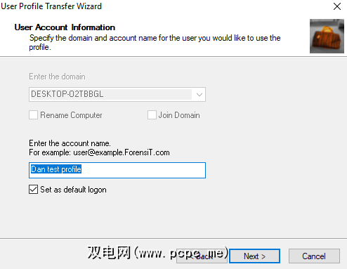 在下一个屏幕上,可以给您的配置文件一个新名称,并确定是否要将其作为计算机的默认配置文件。对选择满意后,请按下一步。