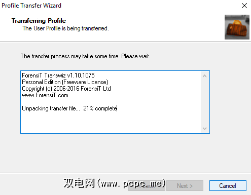 让Transwiz解压缩您的个人资料。该过程完成后,您将可以在登录主屏幕上登录创建的配置文件。