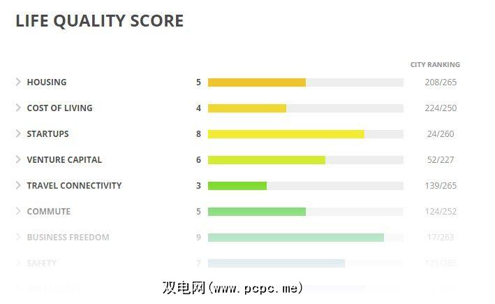 Teleport的最好之处在于它是全球性的,而不仅限于美国。目前,该网站涵盖了全球265个最具创意的地区。根据300多种不同指标(例如生活成本,教育质量,对少数民族的容忍度,环境质量,文化活动,工作机会,劳动法规和经济增长)找到下一步行动的理想地点