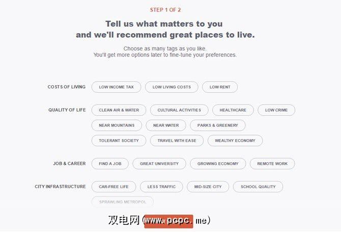 如果不确定要去哪里:。 Teleport提供了多个标签供您选择,每个选择都将帮助您微调正确的位置。例如,您可以选择低生活费作为一个标准,然后将其与附近的山脉配对。另一个选择是提高学校素质。