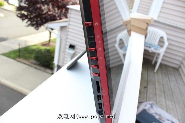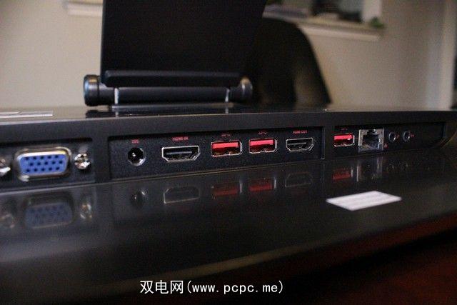端口被塞在宽大的支架下。您会找到HDMI输入和输出以及VGA端口。您还会为想要使用自己的扬声器而不是MSI内置产品的用户找到一个耳机和麦克风端口。对于网络连接,包括一个以太网端口以及Wifi。