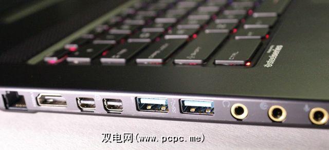 说到端口,这款笔记本电脑有很多,带有2个Mini DisplayPorts和一个HDMI端口,可以连接外部显示器。它还有4个USB 3.0端口,一个耳机输入端口,一个麦克风输出端口和一个S-PDIF端口。