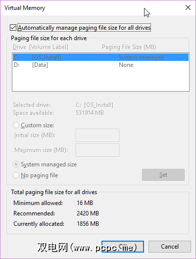 在这种情况下,Windows会尝试使用分页文件提供临时缓解。当前保存在RAM中的一些重要信息将暂时传输到硬盘驱动器上的文件中。由于硬盘驱动器的内存要比超高速RAM慢得多(甚至SSD也要慢),因此调用此信息将花费更长的时间。随着系统执行更多读/写操作,它还会增加驱动器的磨损。