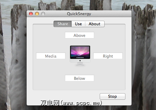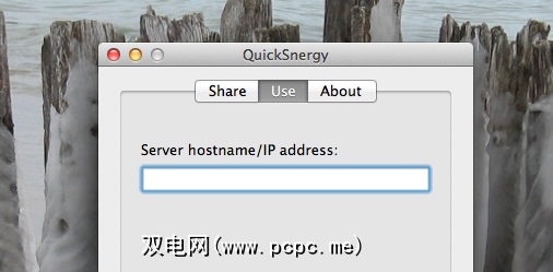 QuickSynergy的主界面有两个屏幕:一个用于共享,一个用于使用。如果您曾经使用过TightVNC或任何VNC服务,就会对术语感到困惑。