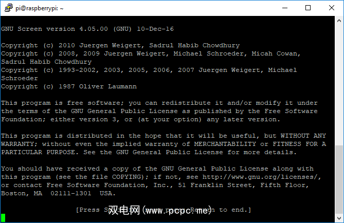 启动屏幕会话很简单。打开终端或建立SSH连接,然后键入屏幕。您会看到“屏幕介绍"窗口;按下空格键或按Enter键将其关闭。