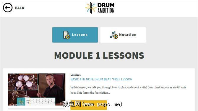 要获得大量的课程以及符号,Drum Ambition非常棒。您可以观看视频说明并下载该课程的乐谱。如果您想继续学习一些免费课程,则可以每月订阅$ 14.99,并获得全面支持,并可以访问课程表和每月视频博客。