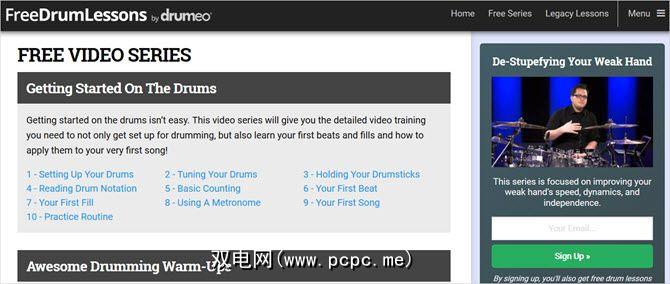 Drumeo的FreeDrumLessons提供了大量的课程,是一个不错的选择。从设置和调整到热身和锻炼,您将为初学者选择课程感到满意。然后,尝试一下鼓点和鼓点。