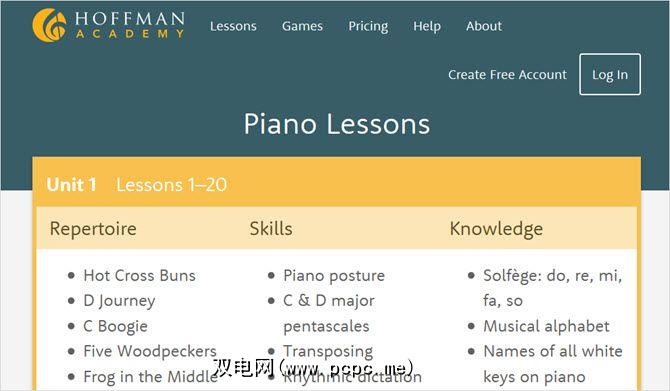霍夫曼学院是钢琴课上另一个可靠的资源。您可以轻松地学习180个视频课程中的每个课程,因为它们分为不同的单元。在开始一个单元之前,您可以看到要学习的技能和概念的列表。
