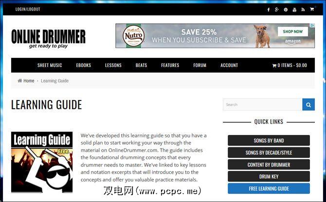 休息时,请查看乐谱,课程,节拍,电子书,因为Online Drummer拥有全部。