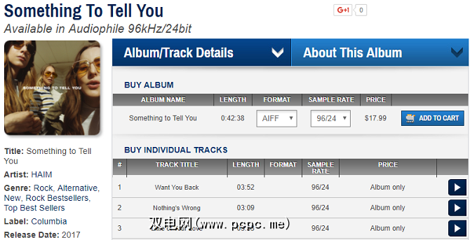 单击专辑时,在页面顶部将看到其音频质量。在确认购买之前,请确保它满足您的需求。