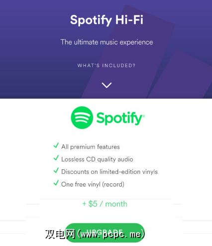 品牌为 Spotify Hi-Fi 是A / B测试世界各地用户的价格。有些人被要求每月额外支付5美元,而另一些人被要求每月额外支付10美元。