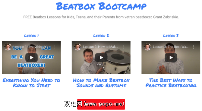 从Beatbox Camp开始,这是Grant Zabriskie在YouTube上分为三部分的免费视频系列。这对孩子,青少年和初学者来说非常有用,并且您也可以一起尝试。