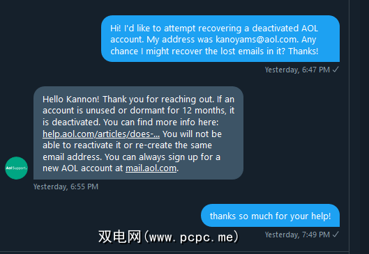 但是要小心:如果您12个月或更长时间未登录AOL Mail,则您的帐户将被删除。为了澄清AOL的官方帐户停用政策,请考虑在Twitter或Facebook上与他们联系。