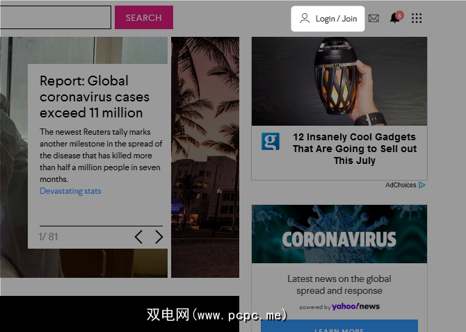 首先,导航到AOL.com,然后在屏幕右上角单击登录/加入。