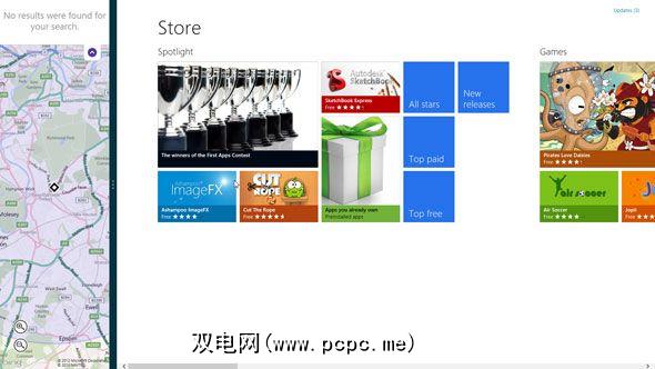 地图:知道我的粗略位置,但是即使搜索“伦敦"也显示零结果。我猜英国的用户也没有启用地图。显然。不过,我了解– 这是一种范式转换,很酷。这个高级用户仍然对此感到沮丧。在大多数情况下,Metro应用程序甚至都没有后退按钮-您将鼠标悬停在左下角并单击返回到“开始"屏幕,使应用程序保持原样。