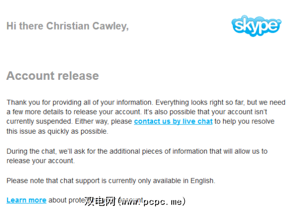 现在,这是您需要注意的地方。来自Skype的第一封电子邮件将要求您解决一些安全问题并更改密码。但是,这还没有结束,也无法使您重新获得对帐户的完全控制权。
