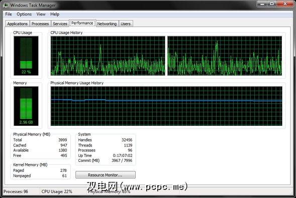 在这里您可以以可视形式查看统计信息并访问资源ce监视更多细节。我想说的是,此标签并不适合“普通用户",因为这对他们来说意义不大,但它仍然是一个方便的工具,不应被遗忘。同样,它与Task Manager的其他替代产品处于同等水平或高于平均水平。从正常运行时间到CPU使用率历史记录,您所需的一切都在这里–无需其他应用程序。