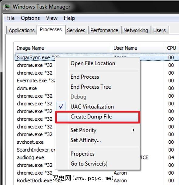还记得我们谈到结束过程时的情况吗?解决应用程序问题的另一种方法是使用调试工具,该工具对于Windows是免费的。为此,您需要创建一个转储文件以供调试工具评估。右键单击有问题的过程,然后单击“创建转储文件"。注意文件的保存位置,以便在使用调试工具打开文件时可以轻松地访问它。