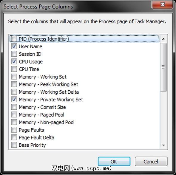 一旦选择了想要的选项(不要有太多),最好适当调整它们的大小,以便在打开时将来,任务管理器中的所有信息都将可见,而无需先调整列大小。
