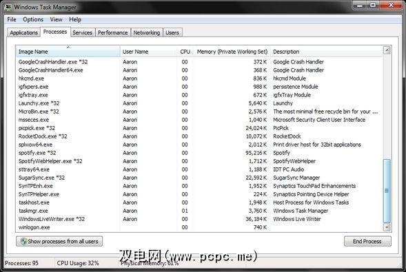 关于此选项卡,您需要了解的第一件事是有可能无法显示所有流程–特别是在计算机上有多个用户的情况下。但是,即使没有,某些程序也位于不同的“用户"下。