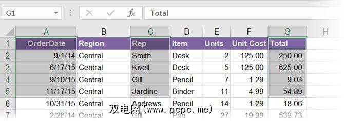选择两列或更多列。要突出显示前五列?在名称框中键入 A:E ,然后按Enter键以选择列A至E。再次,您必须提供两列或更多列。