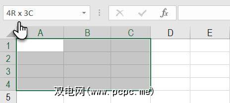 “名称"框不仅会为您提供一个单元格的地址。它也可以应用于任何一组单元。例如: