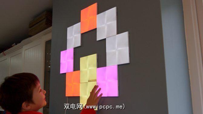 Nanoleaf Canvas的新功能是每个面板中的触摸传感器。除了在基本的彩色场景中增加一点交互性之外,还可以启用手势控件,例如双击以打开或关闭,或者向上滑动以增加亮度。