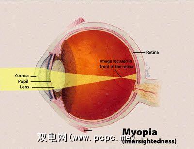 如果光线聚焦在电影镜头的前方或远处,屏幕上的一切都很模糊。当它聚焦在屏幕前时,即称为近视或近视。如果电影屏幕离您更近一些,那么一切都将聚焦。