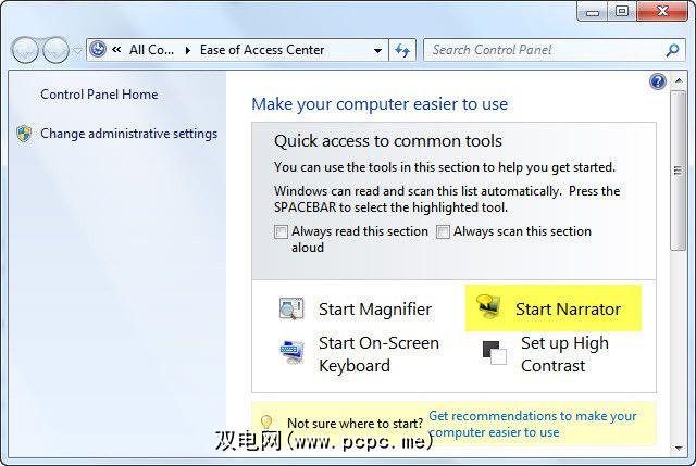 如果结合使用上述方法的某些方法有帮助,但仍然有些东西很难阅读,您可以考虑打开 Narrator 服务。再次打开轻松访问中心。您会看到一个名为启动讲述人的选择。单击该按钮。