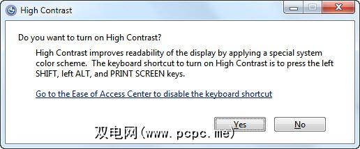 操作完成后,将打开一个新的较小窗口,询问“您是否要打开高对比度?",只需单击是按钮。