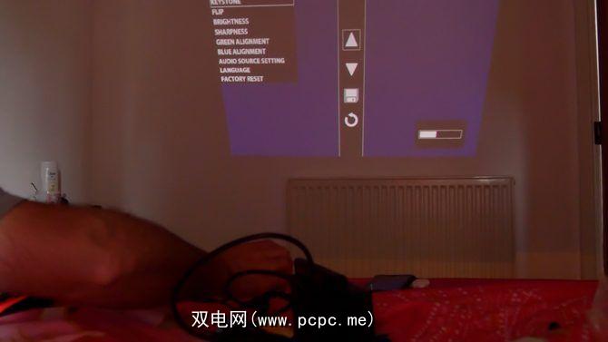 单个组合式按钮开关和设备侧面的拨动开关可控制音量和菜单操作。按住三秒钟进入设置菜单。实际上,如果您从某个角度投影,则只需要执行此操作即可调整梯形失真。可以进行锐度调整,但这只是为了微调出厂设置。在日常使用中,激光投影在所有合理的距离上都保持清晰,不需要重新聚焦。这也意味着它可以投影到曲面上而不会牺牲焦点(尽管图像会变形)。