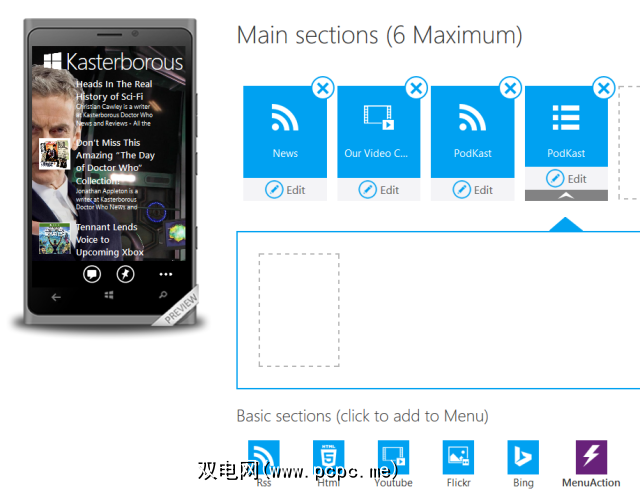 Windows Phone App Studio工具基于网络,可让您使用RSS之类的资产来创建应用供稿和YouTube频道。完成后,您可以将其安装在手机上。