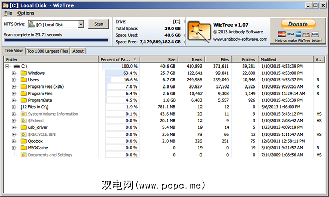 那么为什么要在WinDirStat上使用WizTree?速度。虽然其他磁盘分析仪可能需要花费几分钟来扫描驱动器,但WizTree只需花费几秒钟。对于那些想在不浪费时间的情况下可视化磁盘空间的人来说,这是一个完美的工具。还有一个“ 1000个最大的文件"选项卡,但听起来并不那么有用(它们大多数是系统文件)。