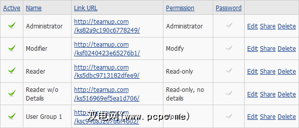 一个我最喜欢的Teamup功能是与他人共享日历很容易。绝对不需要注册,因为您只需要提供唯一的URL。这些链接可以根据您希望授予的权限进行调整。例如,一个链接可以允许修改日历,而另一个链接可以是只读的。