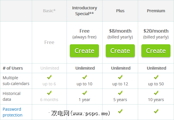 这些计划之间的主要区别在于您可以拥有多少个子日历,存储历史数据的时间,是否可以用密码保护日历,是否可以将文件直接上传到事件以及添加计划程序视图。