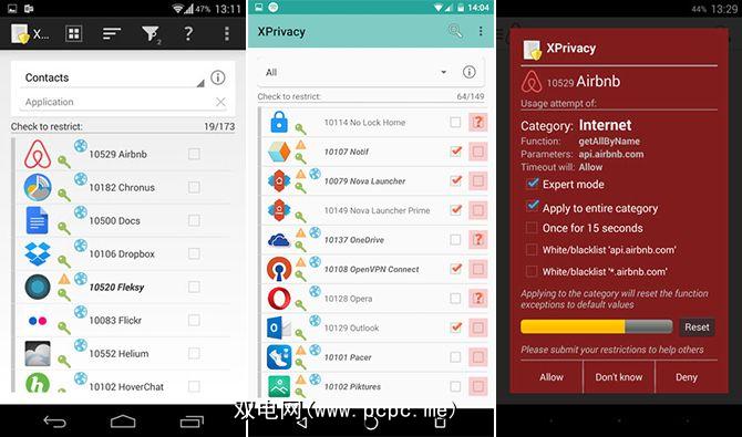 完整的权限控件是在Nougat中引入的。对于较旧的设备,必须在Xposed Framework上运行XPrivacy之类的应用。它使您可以永久地和暂时地允许和拒绝任何应用程序的权限,并且是一个功能强大的工具。