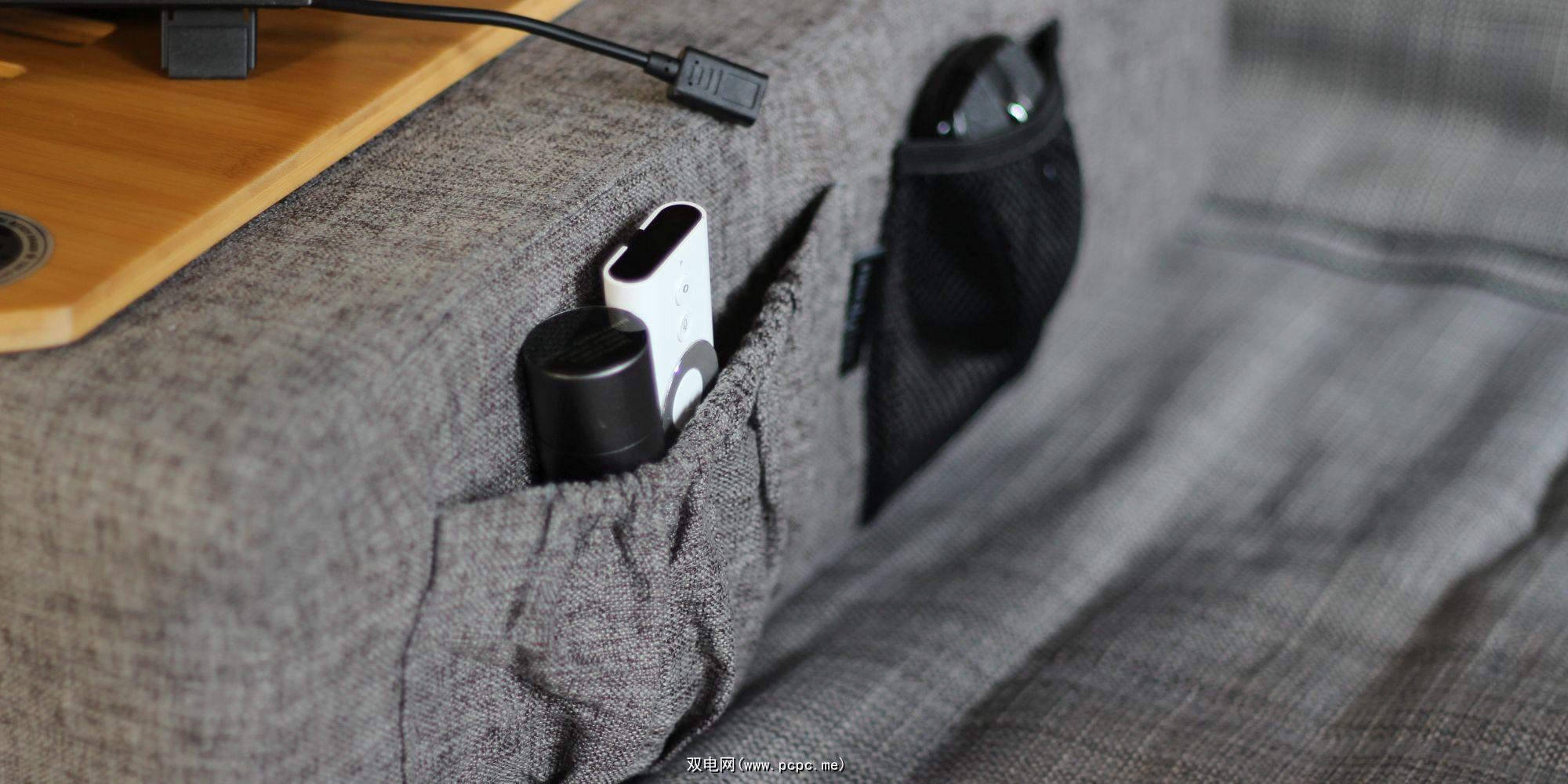 除了舒适之外,Cyworx 还包括两个用于存放外围设备的侧袋。一个口袋是用于放置交流适配器的网状编织物。另一个小袋用于存放电脑外设;有一个松紧带可以防止垃圾掉出来。总体而言,一旦您将物品放入沙发扶手内,如果您要从沙发移到沙发,它们就很容易搬运。