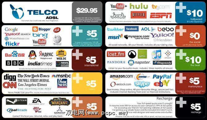 不难举起上面的例子并扩展它们,看看没有网络的互联网会发生什么中立。您可能已经看到了这张图片,在没有网络中立的情况下模拟了ISP可以提供的“打包交易":