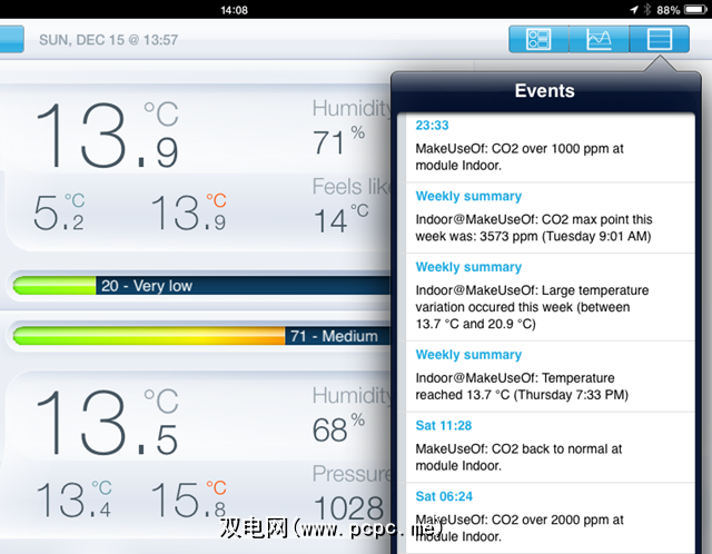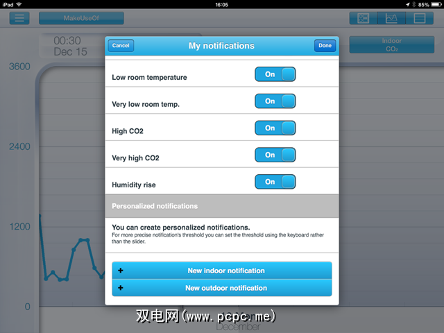 但是您要如何处理这些信息?如果您希望条件保持不变,则可以将应用设置为在出现问题时提醒您。默认情况下,该应用程序会警告您极端情况,例如冻结,压力下降,二氧化碳含量高和室温低。您可以关闭所有这些警报,并添加任何您认为有必要的室外或室内警报,或调整当前警报以更好地满足您的需求。