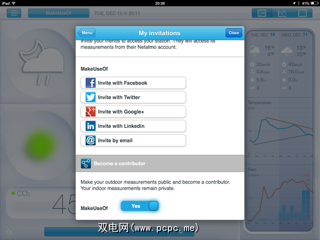 想与家人或朋友分享乐趣吗?邀请他们使用Facebook,Twitter,Google +,LinkedIn或电子邮件查看您的数据。这样一来,他们无需拥有电视台,就能看到您所看到的一切。您还可以选择将户外数据添加到世界地图,或者选择不添加,因为默认情况下已启用。