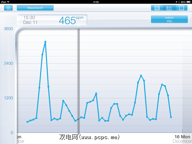 但是,这不仅与当前的测量有关。该应用程序收集所有可用数据,您可以以图表形式查看这些数据。使用右侧的下拉菜单在不同的可用测量之间进行切换。