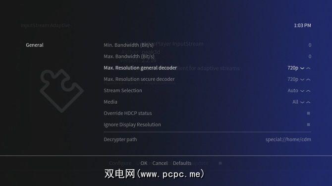 Choose Configure, then set MaxResolution general decoder and Max Resolution secure decoder so that they match the resolution of your TV.